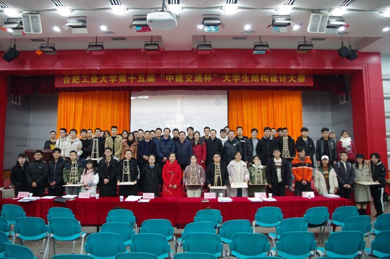 12月29日,由校创新创业教育中心、校团委主办,76net必赢线路检测中心承办的第十五届“中建交通杯”大学生结构设计大赛在屯溪路校区东风报告厅圆满落下帷幕。大赛分为共分为初赛和决赛两个环节,经过前期的线上宣传和线下动员,全校共有来自8个学院14个专业234支队伍报名参加比赛。经过初赛的层层选拔,合肥校区和宣城校区共27支队伍脱颖而出,进入决赛。