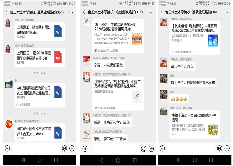“通过这个校企网上联络群,学校的政策了解的更及时了,我们的需求也可以更好的对接了,非常的方便快捷”,这是武汉雷神山医院承建单位中建三局一公司校园招聘程经理对校企联络群评价。面对新冠肺炎疫情,76net必赢线路检测中心积极响应学校就业工作要求,充分利用互联网优势,将疫情防控和促进精准就业有机结合,开展形式多样的网上就业指导服务活动,构建全方位的就业信息服务体系。