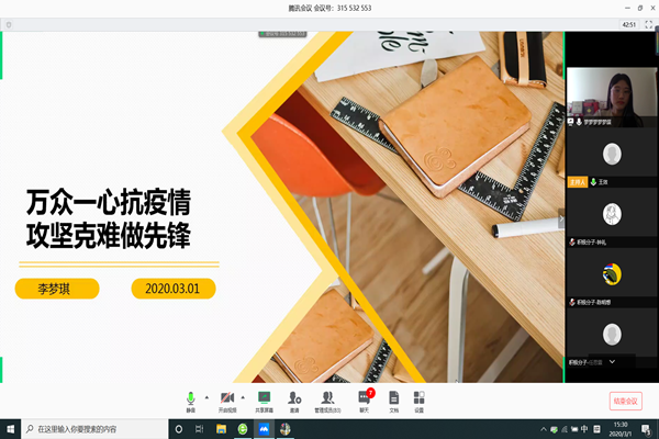 3月1日,学院邀请测绘工程专业2019届优秀毕业生、现中国矿业大学(北京)研究生、原学院本科生第三党支部书记李梦琪同学以“万众一心抗疫情,攻坚克难做先锋”为题的第三期“砼创讲堂”主题交流活动。李梦琪同学从学生工作、本科学习生活和研究生学习生活三方面分享了自己在不同时期、不同身份下兼顾工作与学习的方法,分享了自己的考研经验和研究生的日常生活。她倡议学弟学妹们要坚持做好自身的疫情防控,科学合理安排居家学习和生活,提高自主学习能力,营造良好的学习氛围,做到防疫学习两不误,并就大学学习生活、职业规划、考研就业等问题与同学们进行了深入交流,激励同学们从现在开始不负青春韶华,织翼砥砺前行。