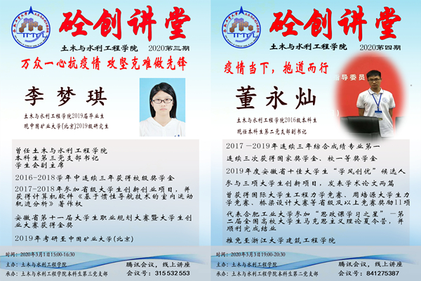 线上“砼创讲堂”活动是学院在防控新型冠状病毒感染肺炎疫情形势下开展的学风建设活动之一,旨在通过疫情期间遴选邀请优秀校友、学生先进典型等与学生进行深入交流,强化榜样示范引领,持续发挥朋辈教育的思想引领作用,让榜样的力量成为土木学子成长成才的动力,让朋辈教育引领学习风尚。