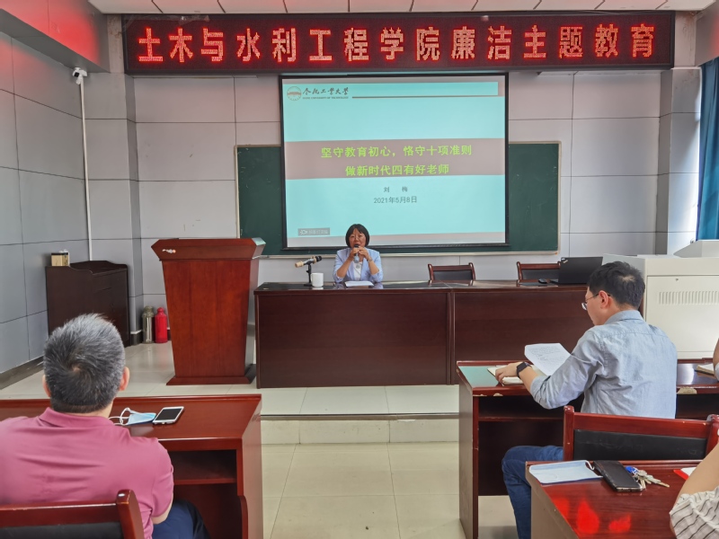 5月8日下午,76net必赢线路检测中心在515会议室开展了廉洁主题教育党课,学院全体党员教师参加了此次党课。党委书记刘梅主持此次活动。