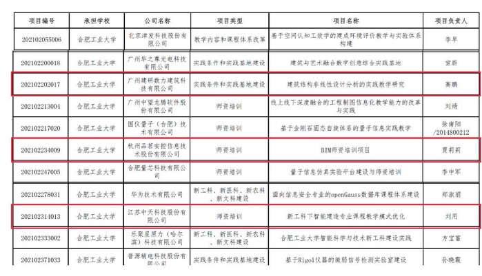 近日,教育部高教司发布《教育部高等教育司关于公布2021年第二批产学合作协同育人项目立项名单的通知》(教高司函〔2021〕18号),我院获批立项三项,包括高鹏副教授《建筑结构非线性设计分析的实践教学研究》,贾莉莉副教授《BIM师资培训项目》,刘用《新工科下智能建造专业课程教学模式优化》等。