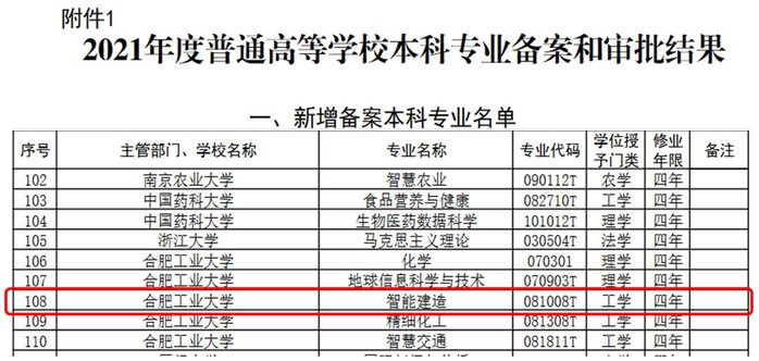 近日,教育部公布了2021年度普通高等学校本科专业备案和审批结果,我院牵头申报的“智能建造”本科专业成功获批。