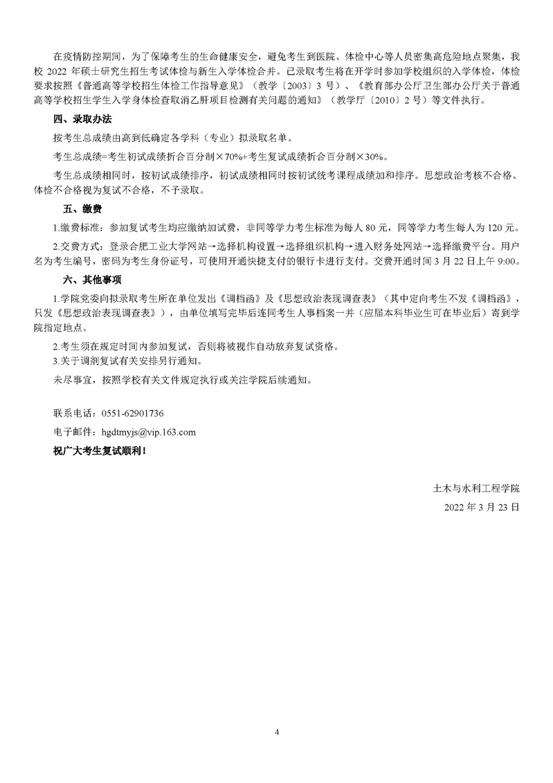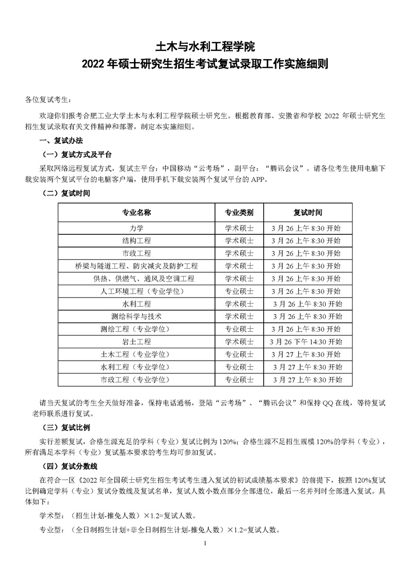 土木学院 2022年硕士研究生招生考试复试录取工作实施细则