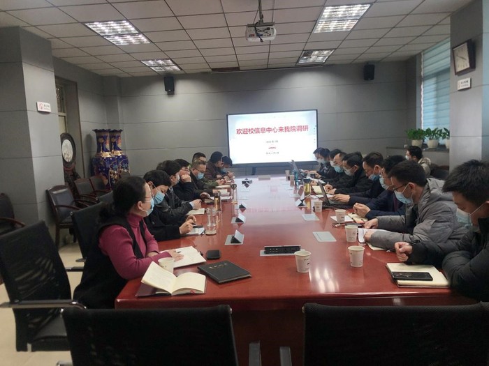 2022年3月24日,校信息化建设与发展中心胡东辉主任等一行来我院调研信息化建设,并与学院进行了交流。76net必赢线路检测中心院长王静峰、副院长张振华和王昌建、副书记魏婷,党政办、教学办、学工办等相关部门人员参加了本次会议。
