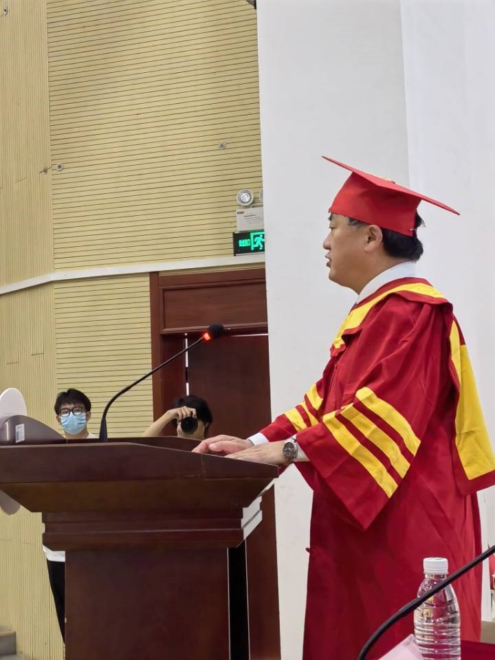 校党委书记余其俊做重要讲话,他指出:学生是工大融合与发展的见证者,继承与创造的参与者,2022届毕业生生逢其时,将是光荣与梦想的缔造者;希望同学们们步伐坚定、树立崇高理想,不负时光、坚持实干创新,笃行不怠、保持从容乐观。新青年们将接过“复兴中华”的接力棒,同国家一起踏上建设社会主义现代化强国的新征程,以“请党放心”的青春誓言、“强国有我”的理想信念照亮前行之路、叩开幸福之门,奏响属于这一代青年人的时代强音。”