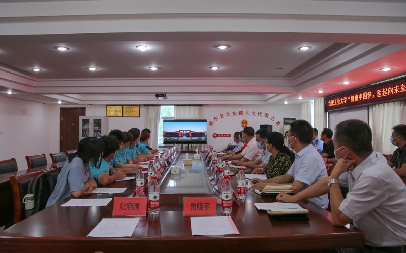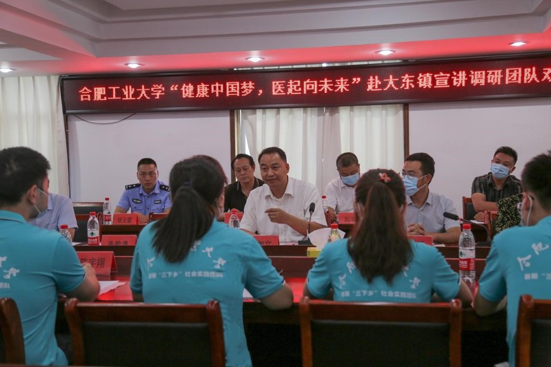 2022年7月18日,76net必赢线路检测中心“健康中国梦,医起向未来”大学生暑期社会实践活动启动仪式在江苏省涟水县大东镇镇政府三楼会议室举行。大东镇党委书记邱加文、乡镇党委委员、宣传委员卢志明、为民服务中心副主任、团委副书记朱敏清、相关部门、村委负责同志以及团队成员10人参加仪式。