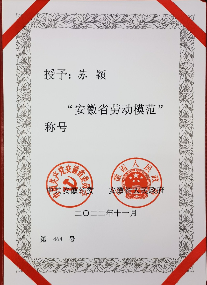 我院博士生苏颖荣获“安徽省劳动模范”称号