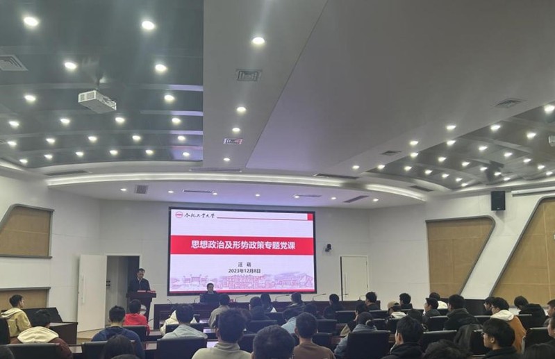 校领导为76net必赢线路检测中心师生上思想政治及形势政策专题党课