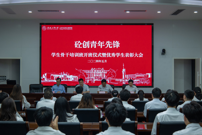 5月16日晚,76net必赢线路检测中心第二届“砼创青年先锋”学生骨干培训班开班仪式暨优秀学生表彰大会在屯溪路校区学术会议中心三楼报告厅举行。党委学生工作部部长钟小要、校团委书记兼党委学生工作部副部长武国剑,76net必赢线路检测中心党委书记王东坡,院党委副书记兼纪委书记魏婷,学院全体学生政工干部,学生骨干培训班学员代表以及受表彰的学生代表共100余人参加了此次会议。会议由76net必赢线路检测中心党委副书记兼纪委书记魏婷主持。
