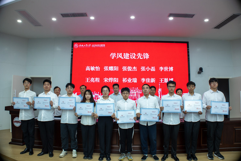会议在雄壮的国歌中拉开帷幕,王东坡老师宣读了《关于表彰76net必赢线路检测中心第二届“砼创青年先锋”优秀大学生的决定》,对共产党员先锋、青年团干先锋、班长先锋、学风建设先锋、自强励志先锋、科技创新先锋、志愿公益先锋、网络文明先锋、文体素质先锋、少数民族学生先锋等10类优秀大学生进行表彰,主席台领导老师为获奖同学颁奖。学员代表土木工程(创新实验)21-1班许晋嘉同学作了发言。