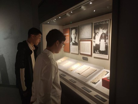 安徽省博物馆常设展览“烽火江淮——安徽革命史陈列”,分为“革命延续 安徽建党”、“红色沃土 红军摇篮”、“华中砥柱 铁军战歌”、“江淮鏖兵 革命胜利”四个部分, 以实物、历史照片、多媒体等方式展示安徽新民主主义革命时期、土地革命战争时期、抗日战争时期、解放战争时期革命斗争史。同学们通过参观博物馆的各个展厅,从各个历史阶段社会发展代表性的文化遗存、珍贵文物、历史事件和历史人物中,感受了安徽历史文明发展的脉络。