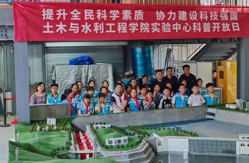 科普开放日期间还迎来了一批特别的“小客人”。9月25日,合肥市淝河小学30余名“包小蓝”同学走进了本次实验中心科普开放日。在结构实验室,黄亮、赵春风老师为小学生们先后讲解了“环境耦合大型科学实验装置”,演示了“U型钢包覆混凝土组合梁的抗弯性能实验”。从中,小同学们第一次真切地感知结构振动、地震及抗震的基本知识。在水力(利)学实验室小学生们参观了学院大型三级水利枢纽模型,赵静老师对小同学们做了深入浅出的细致介绍,小同学们积极参与到活动中,对水利工程及其利用不时提问。杨慎林老师还为小学生们做了“火是生命之光还是恐怖恶魔?”的科普讲座,讲座以生动有趣的实验为小同学们进行了火灾科普。通过科普参观,小同学们近距离接触到了的土木水利与建筑环境的科学知识,点燃了学生们对科学探索的热情。
