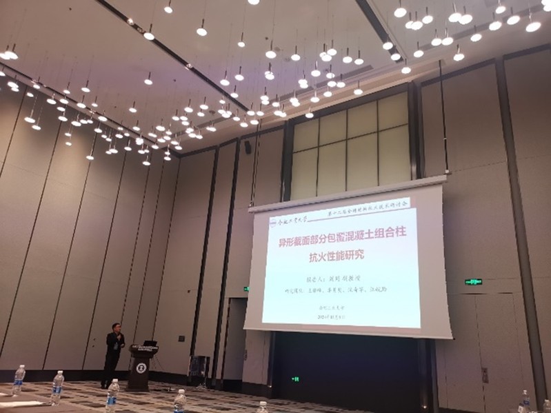 会议期间,王静峰教授做了大会报告“轴压下部分包覆钢-轻骨料混凝土组合柱抗火性能及涂料防火实效”,刘用副教授做分组报告“异形截面部分包覆钢-混凝土组合柱抗火性能研究”,黄俊旗副教授做分组报告“预制地聚物混凝土夹心墙板单面受火性能研究”,会议上与国内学者专家进行了充分交流、碰撞思想和合作研讨。