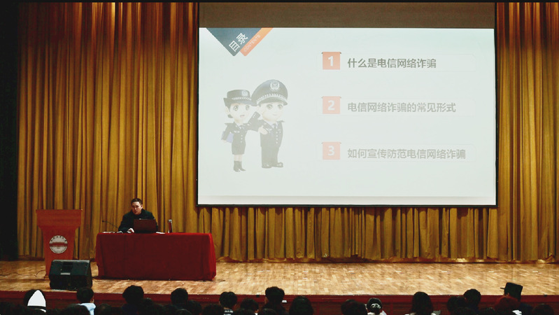 12月16日晚,76net必赢线路检测中心联合包公派出所、包公街道在斛兵礼堂开展“砼创安全”防范电信诈骗专题宣讲会。宣讲会由包公派出所叶明所长主讲,学院党委书记王东坡主持。