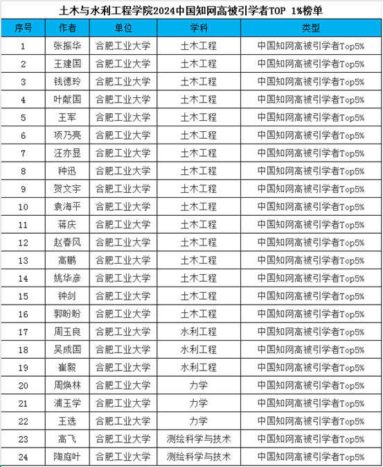 近日,中国知网公布了2024年度知网高被引学者名单,我院30名学者荣登“2024中国知网高被引学者榜单”。其中,王静峰、王志亮、汪明武、金菊良、张礼兵和张春菊等6人入选“2024中国知网高被引学者TOP 1%”;张振华等24人入选“2024中国知网高被引学者TOP 5%”。