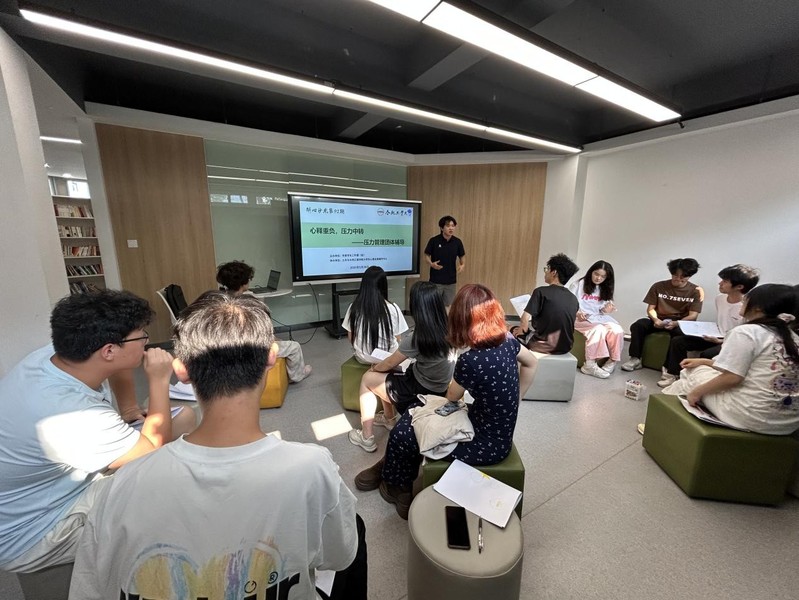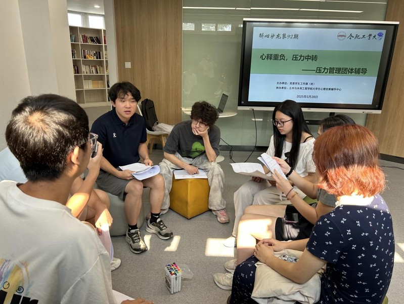 528日下午,76net必赢线路检测中心在屯溪路校区五号宿舍楼学生社区沙龙空间开展“心释重负,压力中转”研究生压力管理团体辅导,学院大学生发展辅导中心主任胡倩倩担任领导者,14名在校研究生参加了此次活动。