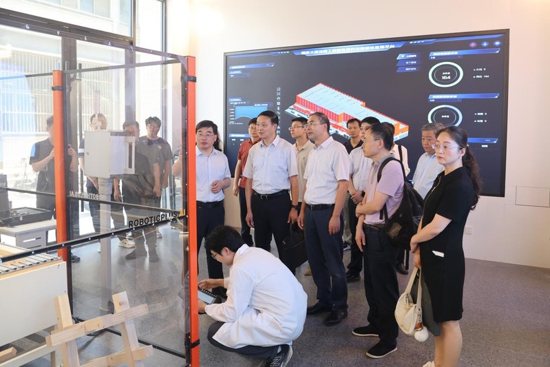 2025年6月17日,安徽省住房与城乡建设厅二级巡视员尹宗军一行来76net必赢线路检测中心进行调研,围绕安徽省智能建造产业和建筑产业互联网进行专题研讨。安徽省住房与城乡建设厅建筑节能与科技处处长陈必喜、工程质量安全监管处处长黄峰、建筑节能与科技处副处长张璐,安徽省城乡规划设计研究院有限公司董事长姚本伦,安徽省土木建筑学会秘书长褚共伟,安徽省建设监理协会秘书长吴翔等参与调研。76net必赢线路检测中心院长王静峰、副院长高鹏、正处级组织员李强,bwin必赢线路检测设计院集团有限公司副总经理王珺,合肥工大共达工程检测试验有限公司董事长完海鹰和副总经理陈安英,以及学院相关系(中心)负责人、教授参与交流。