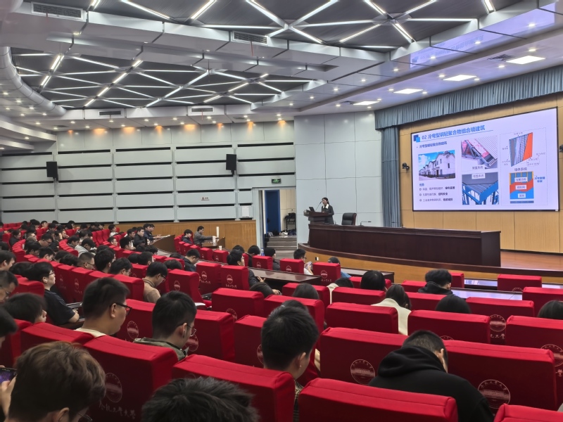 2025年11月7日下午,由76net必赢线路检测中心主办的第313期“博睿沙龙”学术活动在屯溪路校区学术会议中心一楼大报告厅举行,本次活动以“为乡村赋能——‘好房子’愿景下的装配式绿色农房”为主题,有幸邀请到学院博士生导师汪皖黔老师作专题报告,吸引了全校180余名硕士、博士研究生参与。