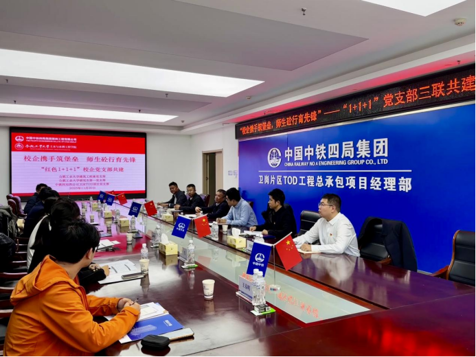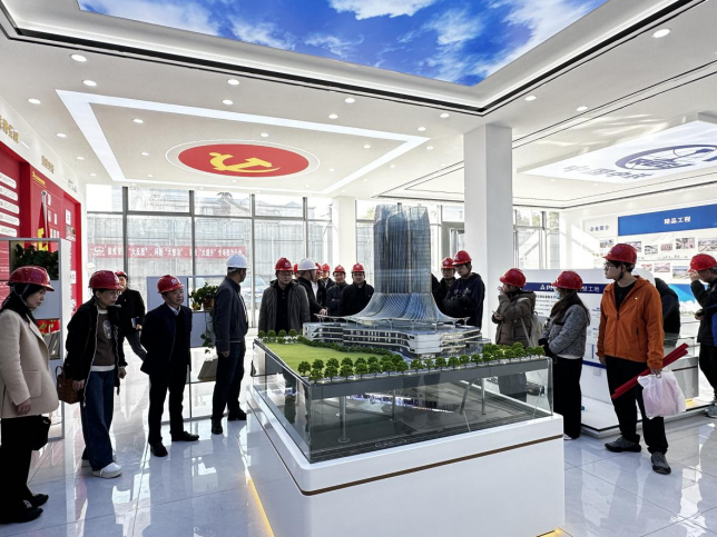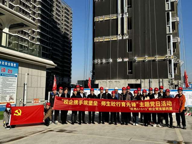 20251120日下午,76net必赢线路检测中心师生赴中铁四局集团第四工程有限公司合肥卫岗TOD项目部开展“校企携手筑堡垒 师生砼行育先锋”“红色1+1+1”党支部共建活动。本次活动由中铁四局四公司卫岗TOD项目党支部土木与水利工程学院建筑工程系党支部、研究生第一党支部联合举办。