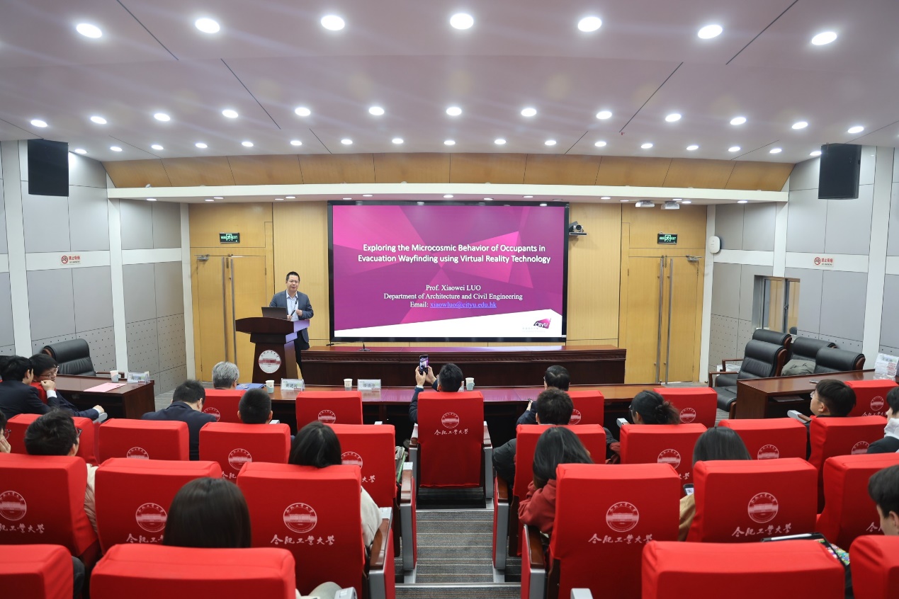 骆晓伟教授以“基于虚拟现实技术的人员疏散寻路微观行为研究”为题作学术报告,阐释了VR与BIM技术在复杂建筑疏散研究中的关键价值,通过构建沉浸式疏散场景揭示对称与非对称分流对人员决策的影响,并提出基于路径的标识可见性评估工具,实现疏散行为规律识别与标识系统优化,为建筑疏散设计提供更精准的数字化技术路径。