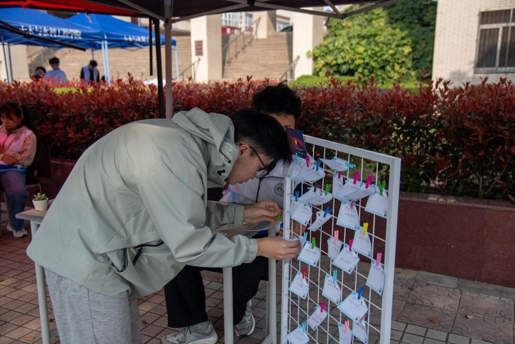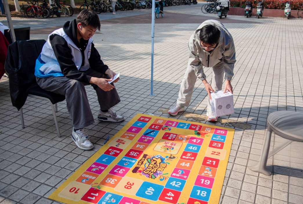 活动现场设置五大互动区域,将知识科普与趣味体验巧妙融合。在“水知识大闯关”区域,巨型骰子与幸运转盘摇身一变,成为趣味答题的载体,人均水资源量、国家水网建设、涉水法规等知识在欢声笑语中入脑入心。“水滴拼图挑战赛”区域以节水标志、中国水系地图为蓝本,师生在指尖拼搭之间,悄然加深对水资源分布与保护的认知。“水污染分类小能手”区域,投壶与套圈让物理、化学、生物污染类型的辨别变得生动可感。“家乡水地图打卡”区域,师生在地图上标注家乡水系、分享水故事,增进了大家对水资源地域特征的理解。游园尾声,“创意点子墙”上贴满写有节水妙招与护水口号的便签,点滴巧思汇聚成校园里一道别样的节水风景线。
